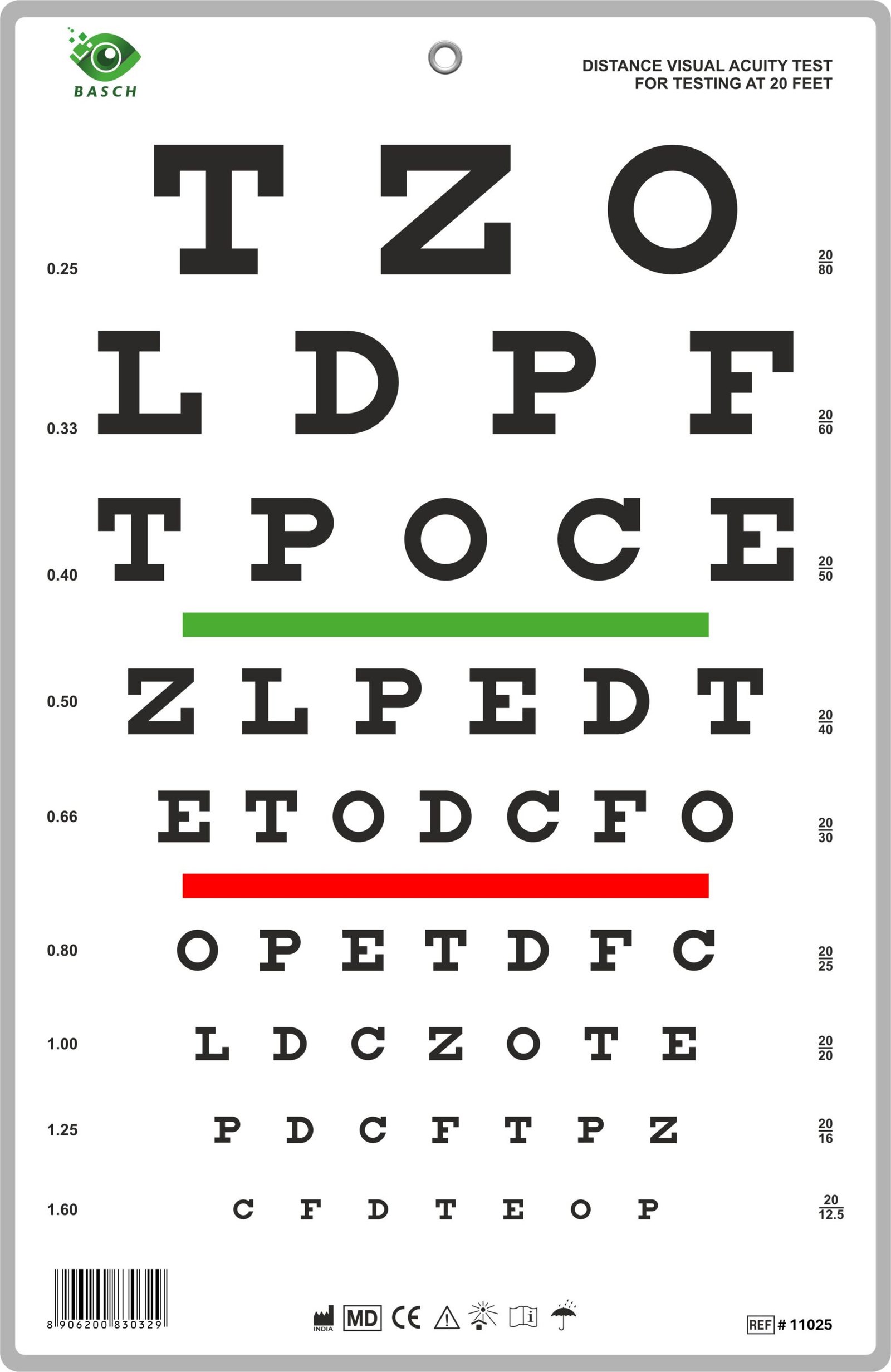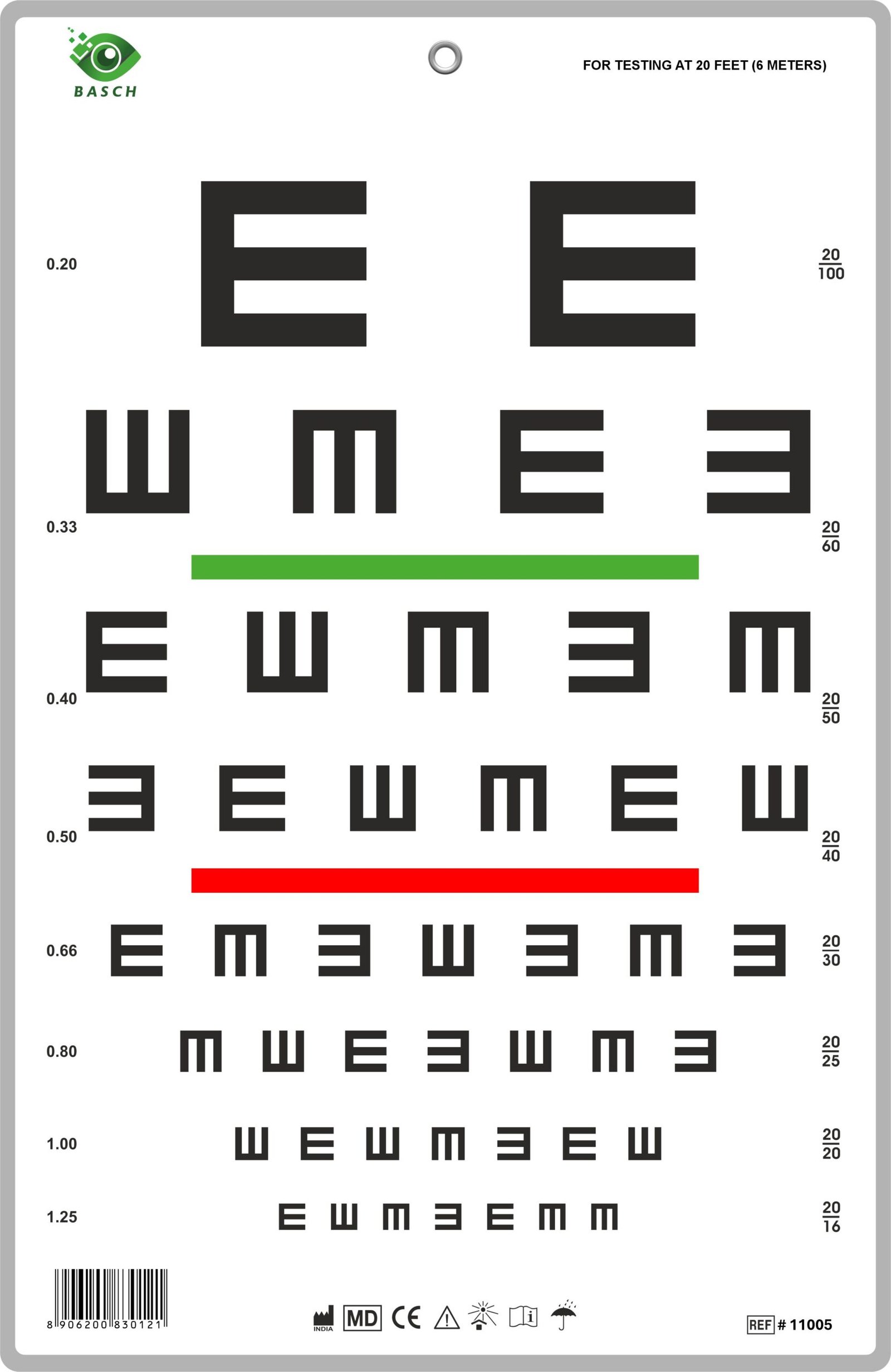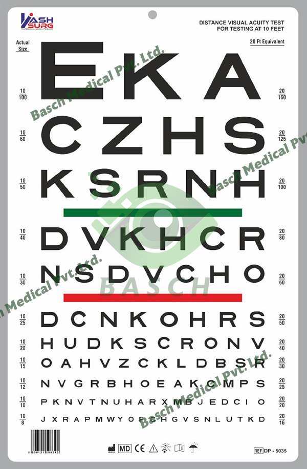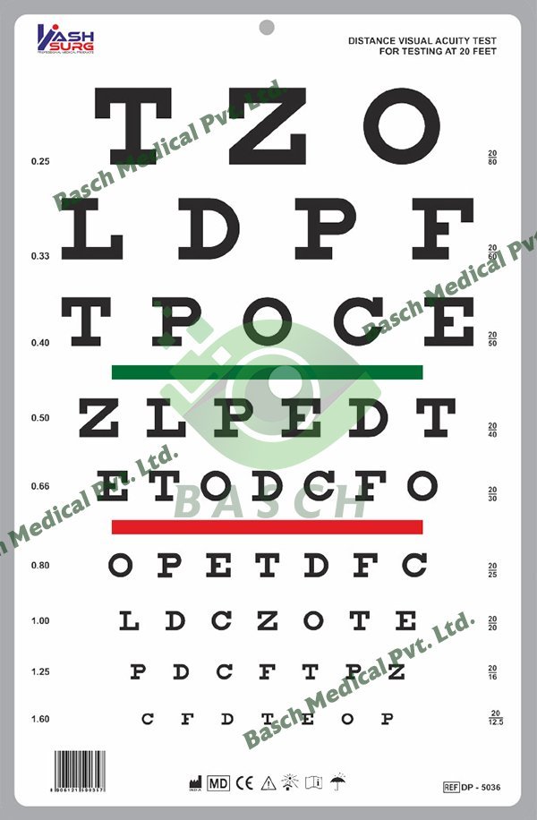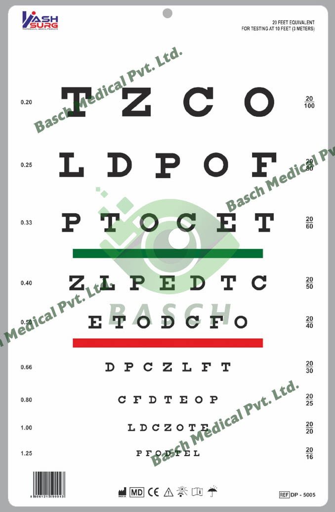 Read MoreSnellen Chart with Red and Green Bar Visual Acuity Test 3m / 10 Feet