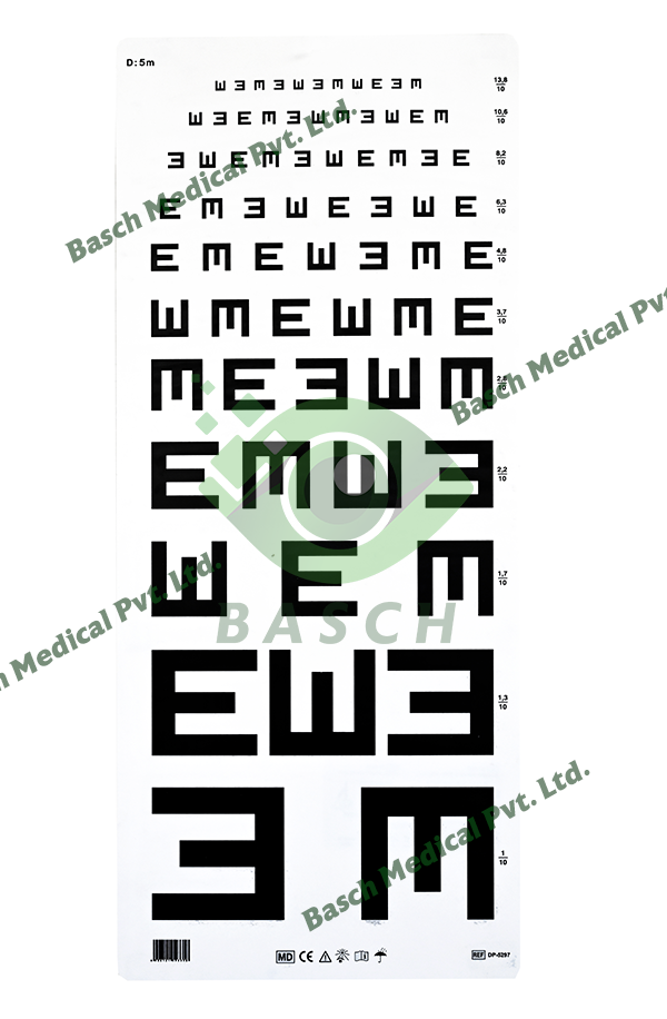 - Tests angular visual acuity by direct reading at a distance of 5 meters.
