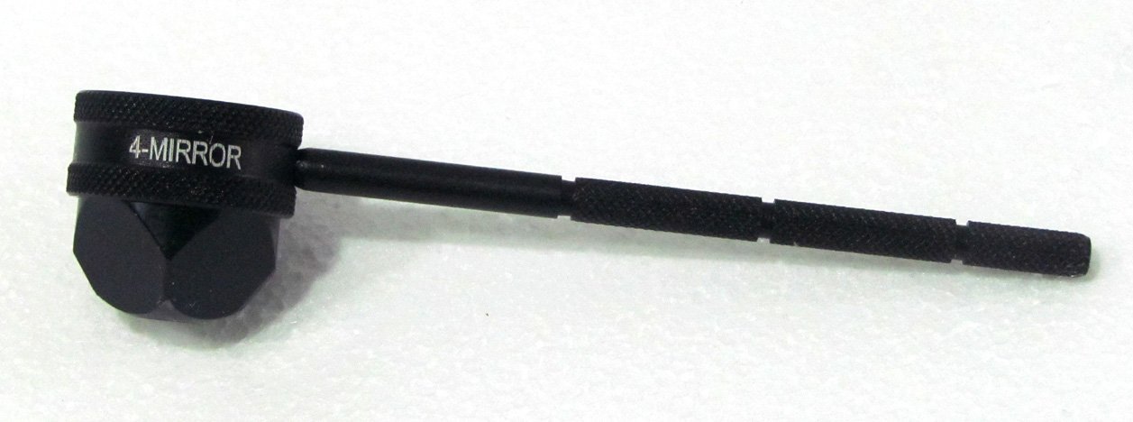 Four mirrors angled at 62° help in viewing all quadrants of the anterior chamber without rotation. The small contact surface of 9 mm diameter makes the lens very convenient to use. It has a unique detachable handle. Coupling fluid not required.