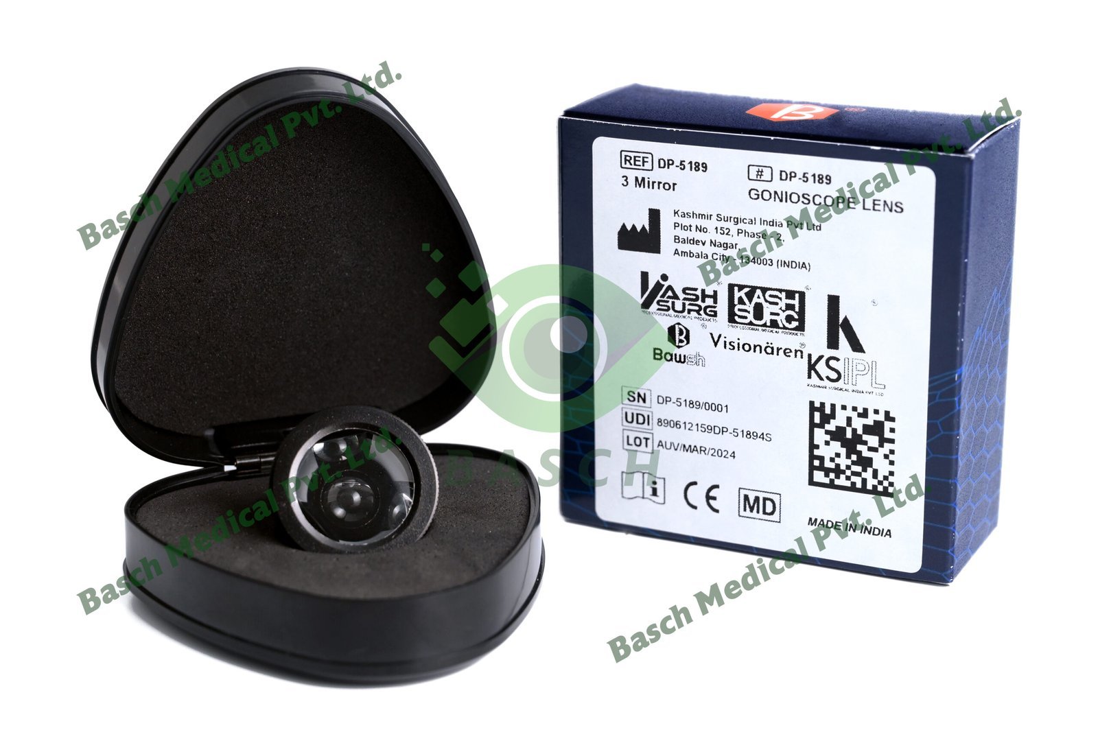 This lens has three mirrors angles at 59°, 66°, and 73° and it is arranged at 120° intervals to permit viewing of the fundus and anterior chamber angle. The posterior pole is also observable through the central axis of the lens.